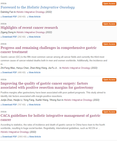 当年,中国抗癌协会与Springer Nature出版集团合作创办了英文期刊Holistic Integrative Oncology。